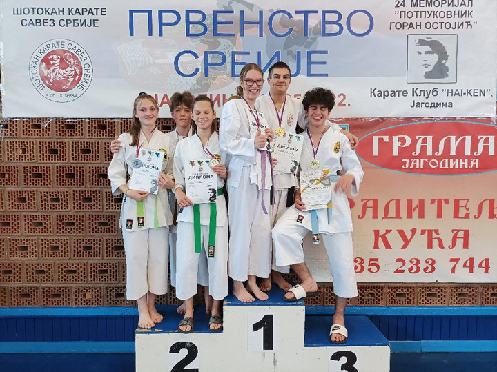 U nedelju 15.05.2022.godine u hali sportova ” Jassa” u Jagodini održano je Prvenstvo Srbije i Memorijani Karate turnir “Potpukovnik Goran Ostojic” u organizaciji Šotokan Karate Saveza Srbije i Karate Kluba “Haiken” Jagodina. Na Prvenstvu Države učestvovalo je oko 430 takmičara iz 35 klubova. Naš karate klub Sensei je predstavljalo 18 takmičara koji su ostvarili odlične rezultate u katama i borbama kako u pojedinačnim tako i u ekipnim nastupima osvojivši 33 medalje, 10 zlatnih, 12 srebrnih i 11 bronzi. Takođe na Prvenstvu Države naš klub je zauzeo 1. mesto u generalnom plasmanu.