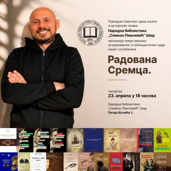 Povodom Svetskog dana knjige i autorskih prava , Narodna biblioteka “Simeon Piščević” u Šidu organizovaće predstavljanje istraživačkog i publicističkog rada Radovana Sremca, arheologa i hroničara Šida i Srema. Program će biti održan u prostorijama biblioteke u četvrtak, 23. aprila, sa početkom u 18 sati.